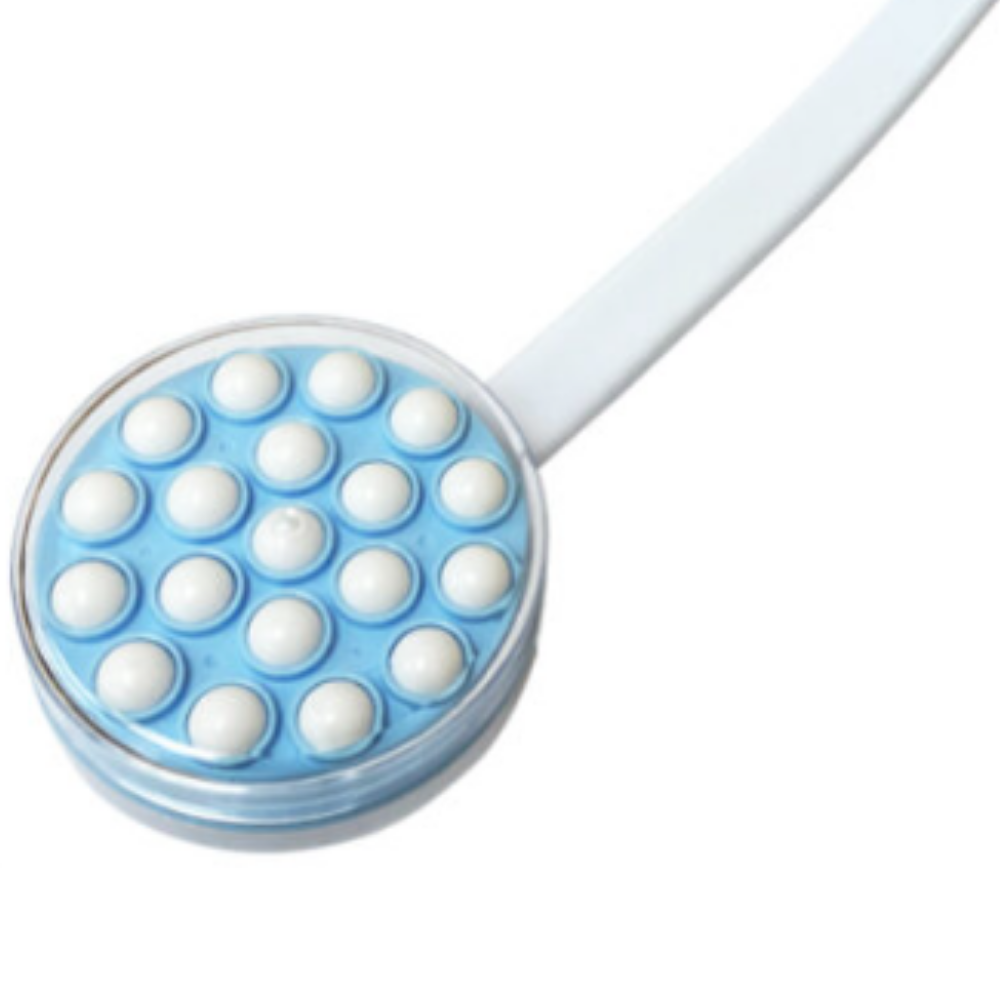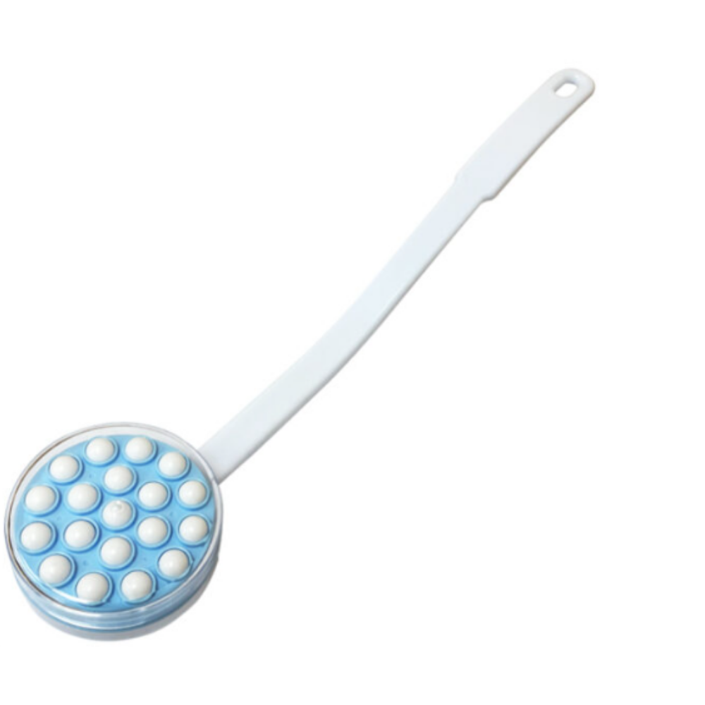 The lotion applicator is an easy way to apply bath gel or body lotion to hard to reach places. As the balls rotate, they gently glide over the skin releasing the liquid.