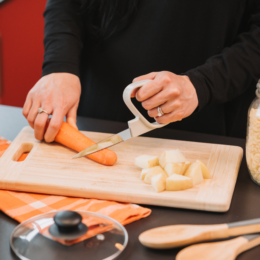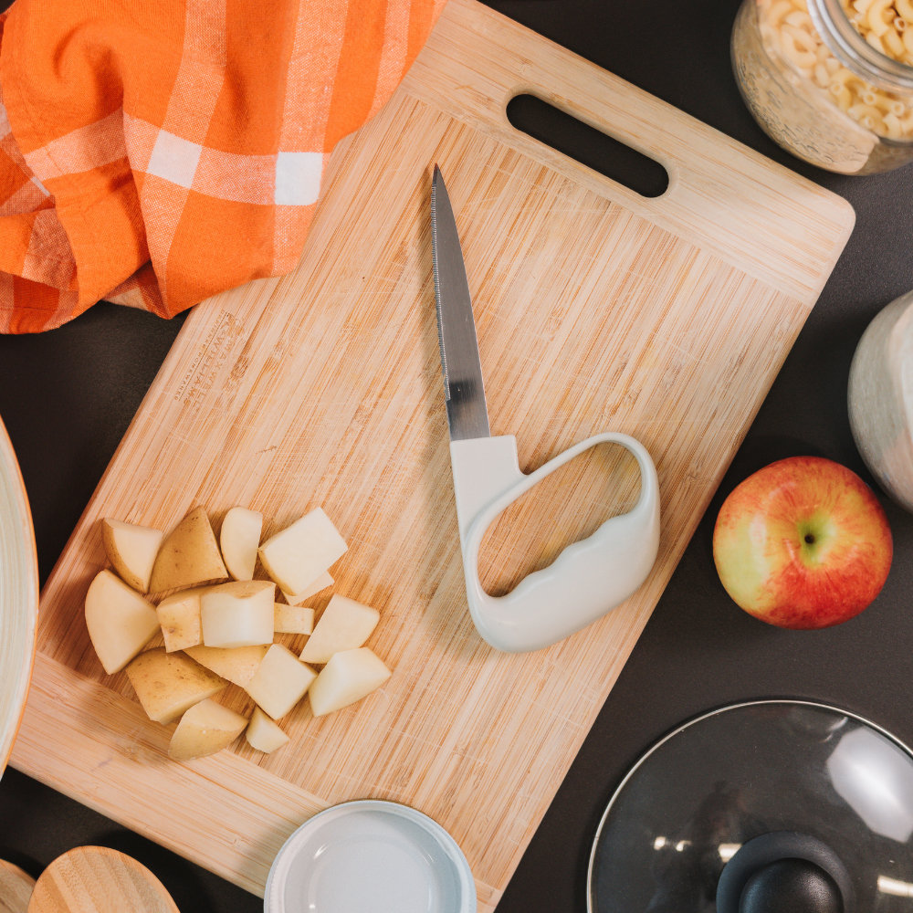 The Reflex range of kitchen utensils has an easy to grip contoured closed handle with the utensil set at an angle to minimise wrist movement for the user.