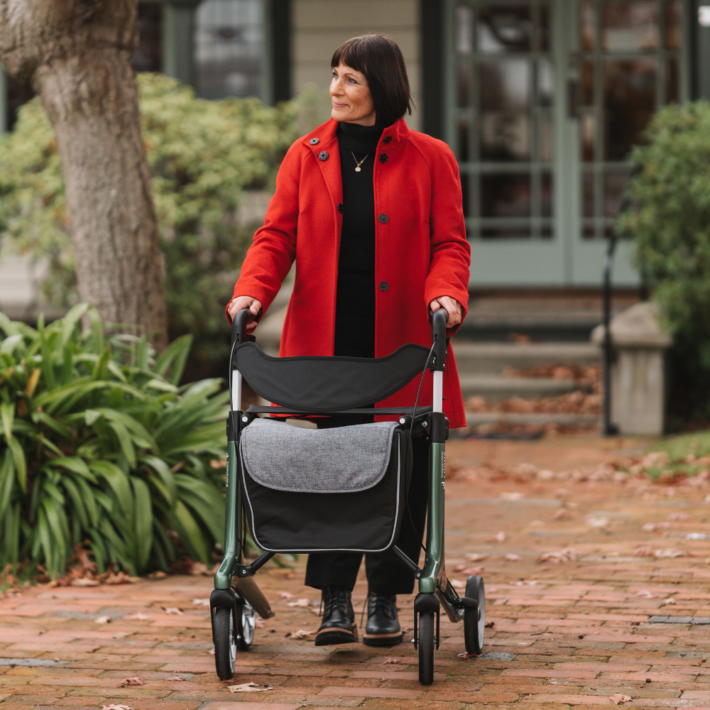 The Devonport is a lightweight walker featuring a carbon fibre frame. It is stylish and suitable for everyday use.