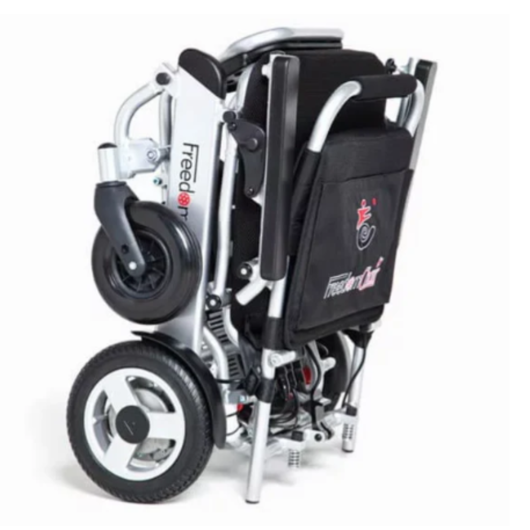 Driving the Freedom Chair is easy and fun. Simply press the power button on the controller, set the speed and use the joystick to move around. The controller manages speed and braking. Folding electric wheelchair that folds in literally a few seconds.