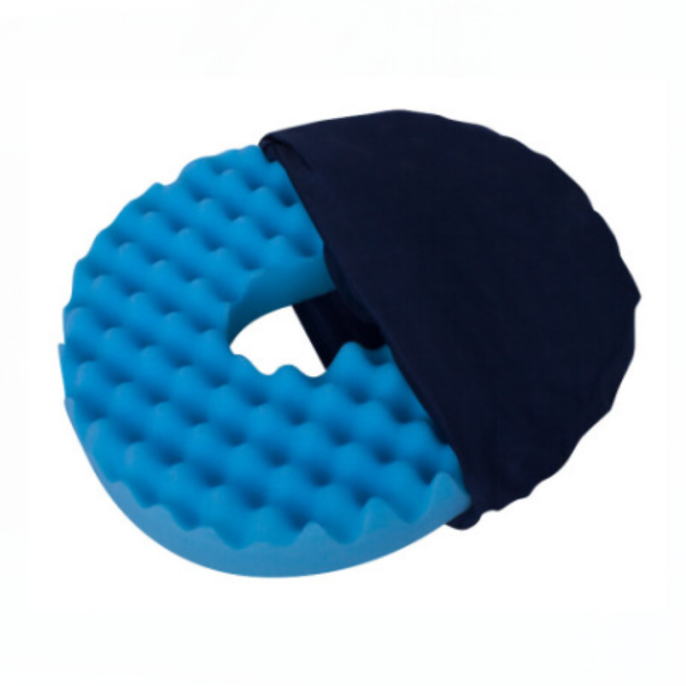 An oval, moulded foam cushion for post-surgical patients or anyone needing additional comfort when seated for long periods.