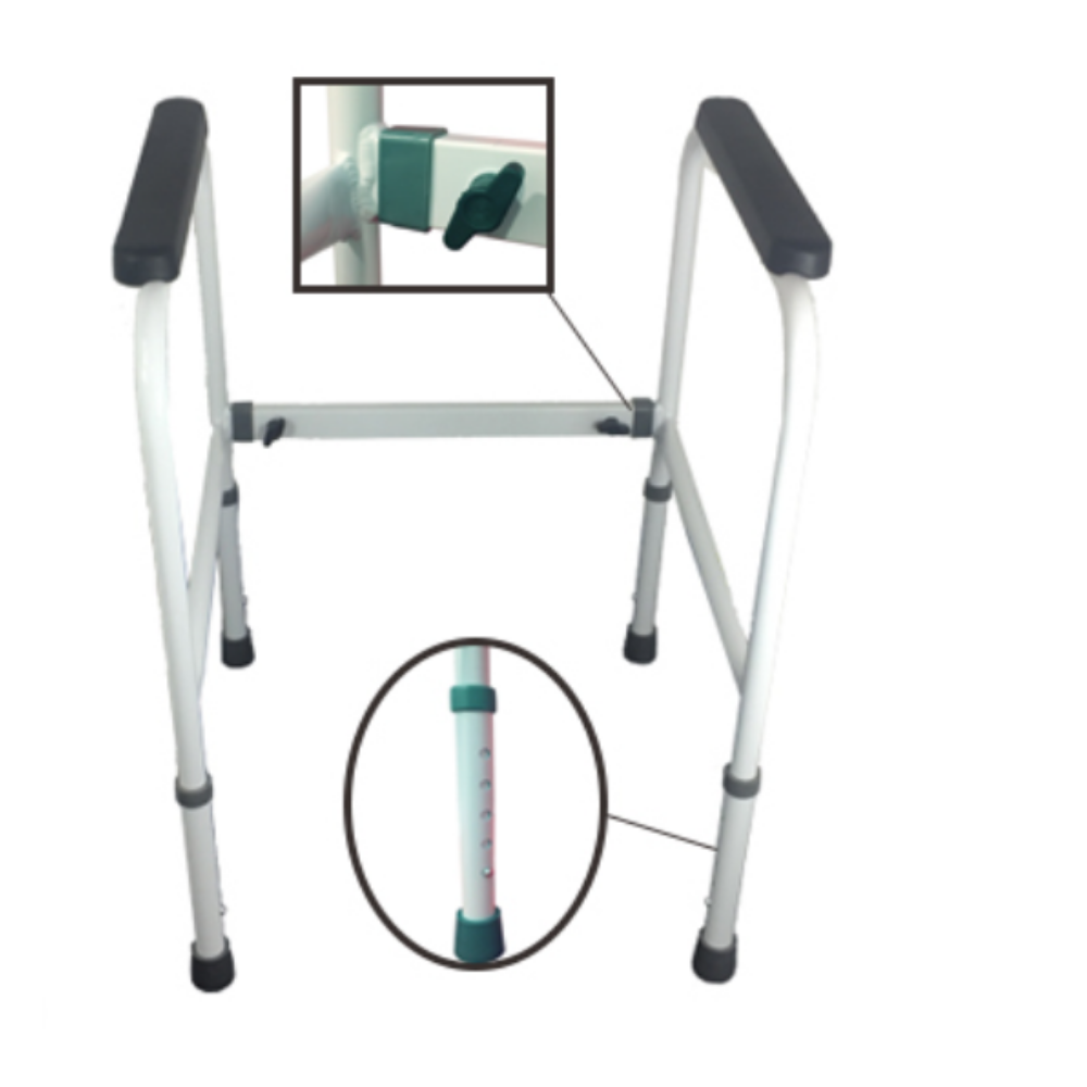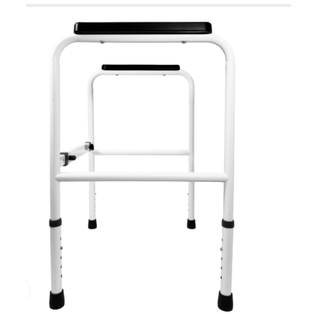 The Freestanding Toilet Surround is designed to provide the user with added stability when getting on and off the toilet.  The unique feature of this frame is the adjustable width from both sides, allowing the frame to fit in even the trickiest of spaces.