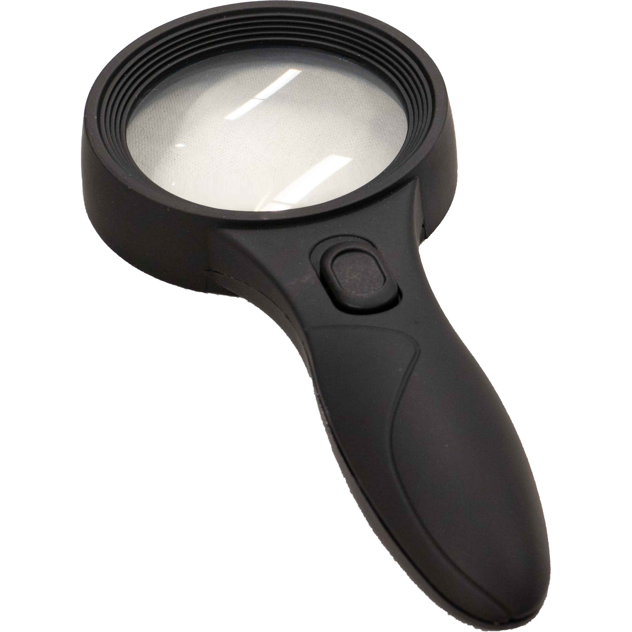 - This handheld Magnifier with LED Lights features 4x magnification.